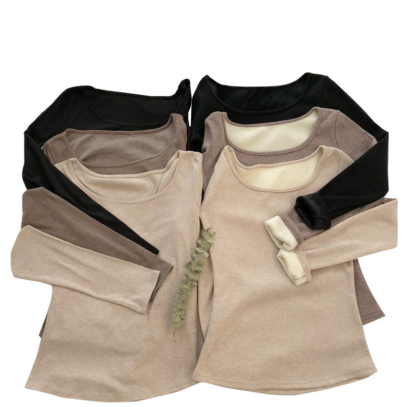 秋冬韓版加絨加厚打底衫學生百搭修身顯瘦長袖保暖內衣T恤上衣女