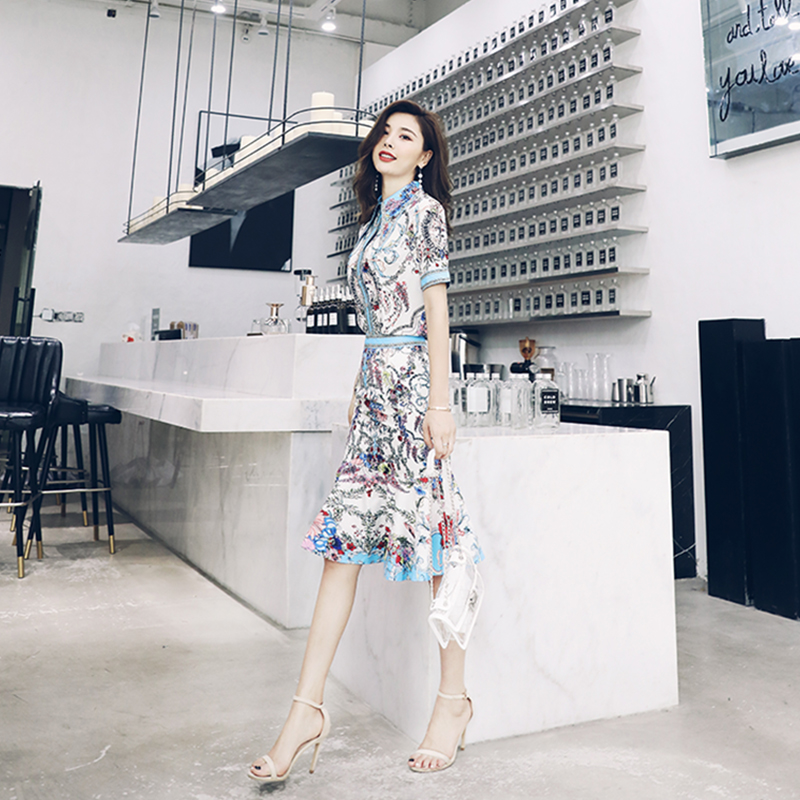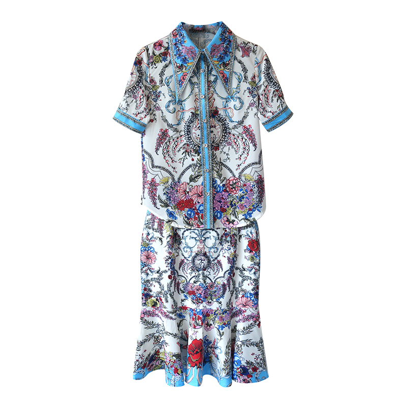 / S秀顯瘦套裝女裝2018夏季新款時尚印花短袖半身裙氣質兩件套裝