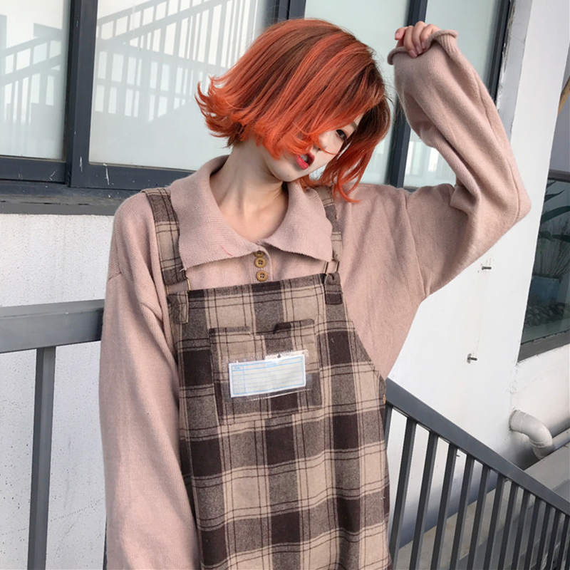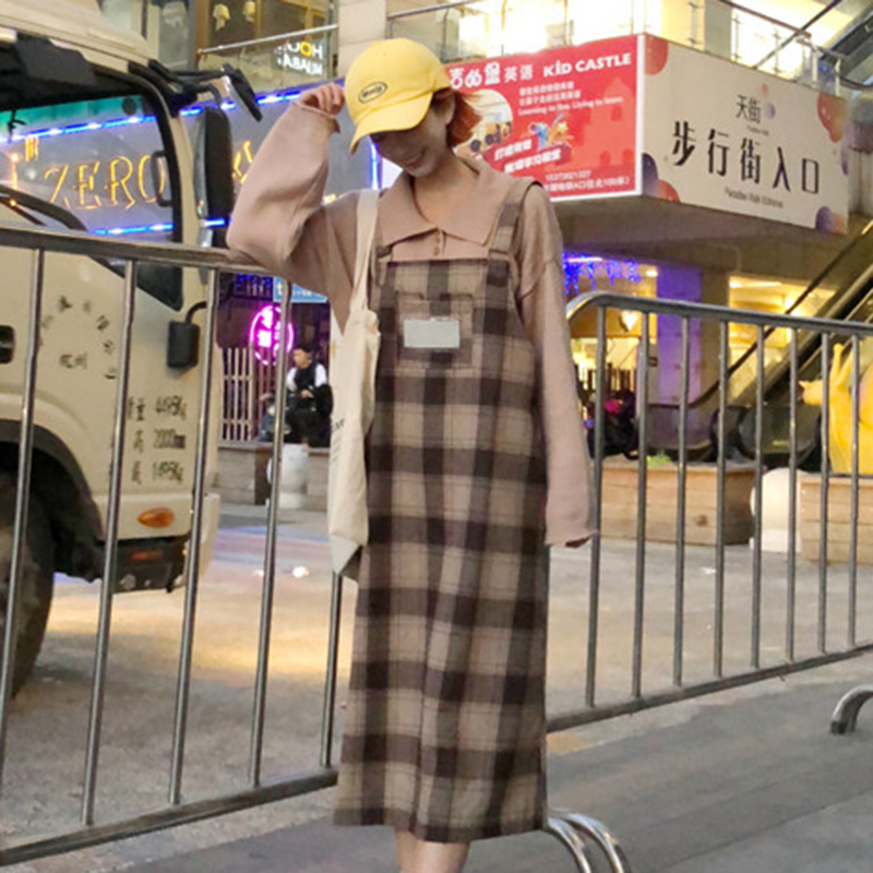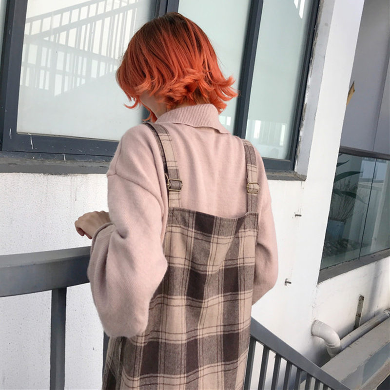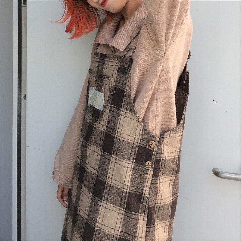 秋裝女2018新款韓版chic學生寬松格子毛呢背帶裙時尚休閑中長裙子