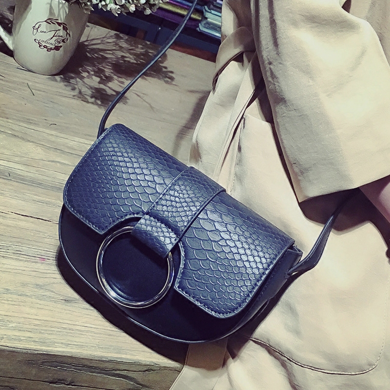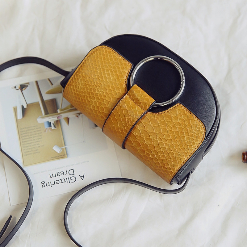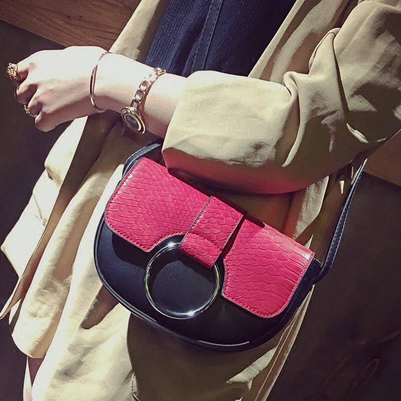 / 包包女新款潮時尚圓環小包鱷魚紋撞色單肩女包韓版百搭斜挎包