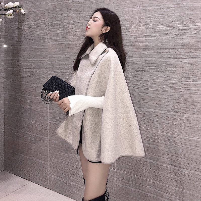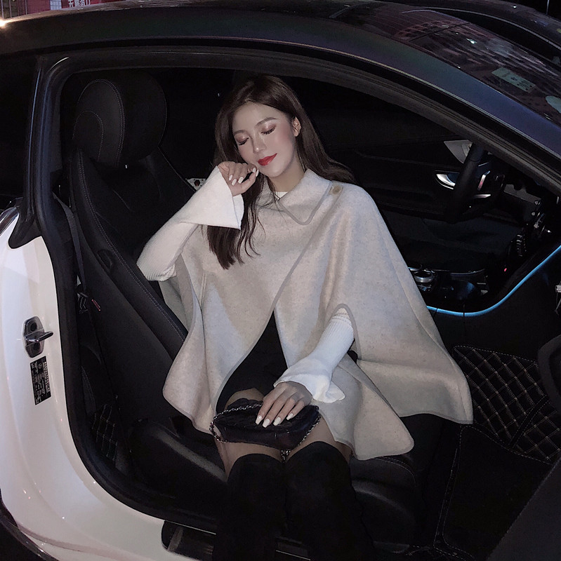 / 復古早秋chic外套女春秋2018新款韓版百搭款寬松斗篷披肩毛呢外套