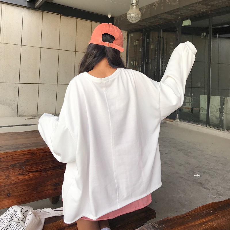 / 春季女裝新款韓版原宿風撞色破洞拼接假兩件上衣學生寬松休閑衛衣