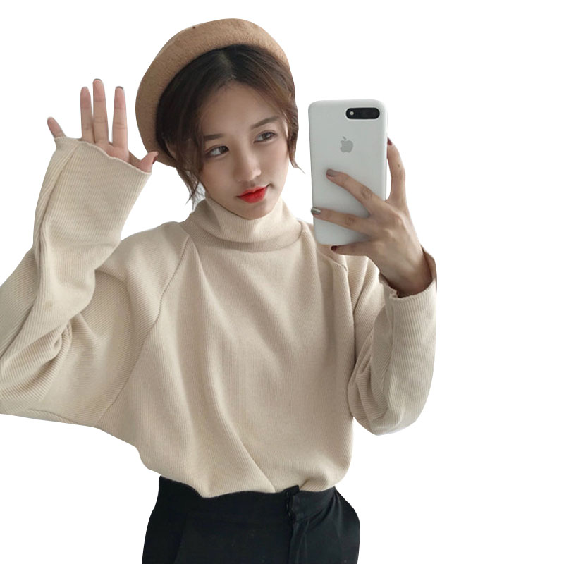 秋季女裝韓版chic復古寬松顯瘦高領打底衫長袖針織衫套頭毛衣上衣