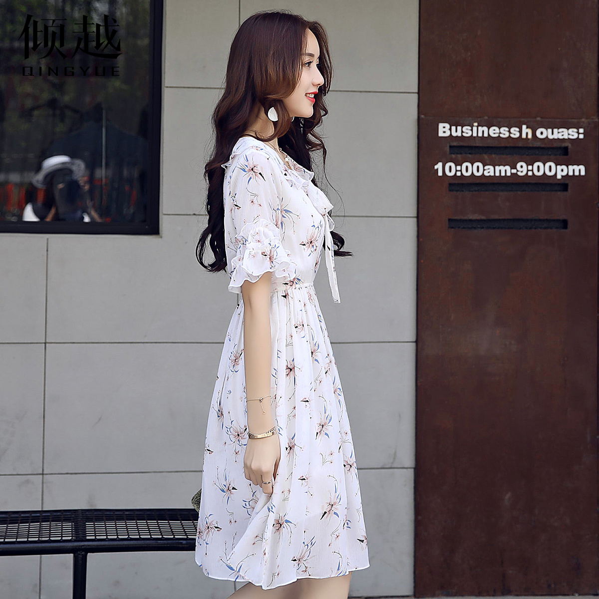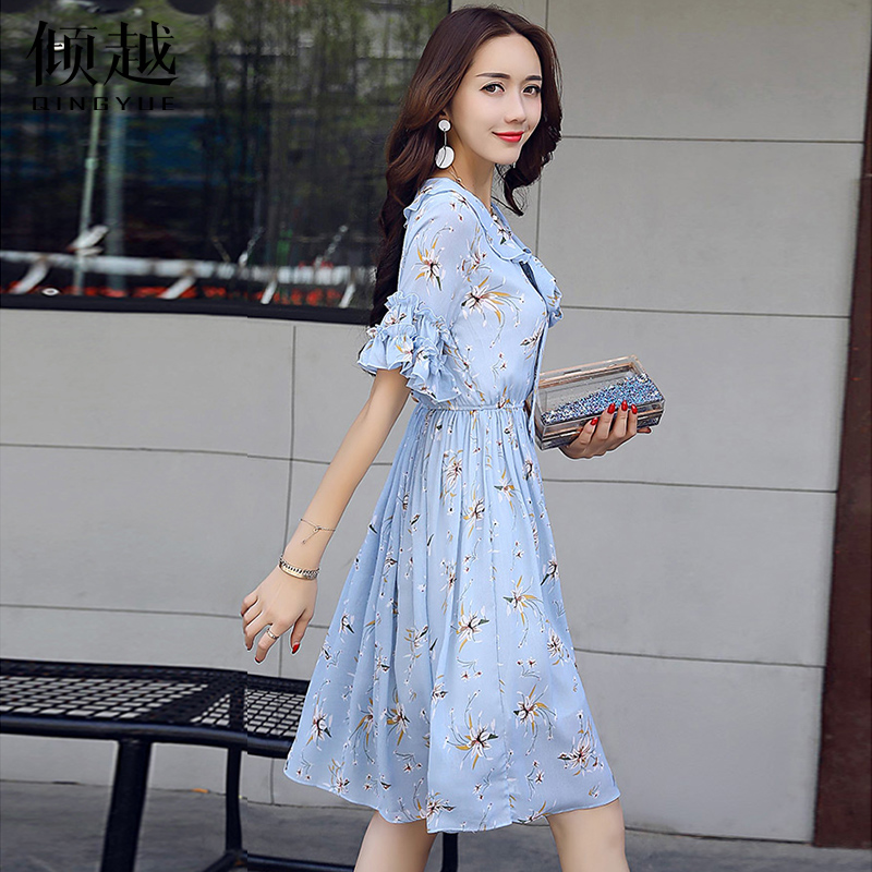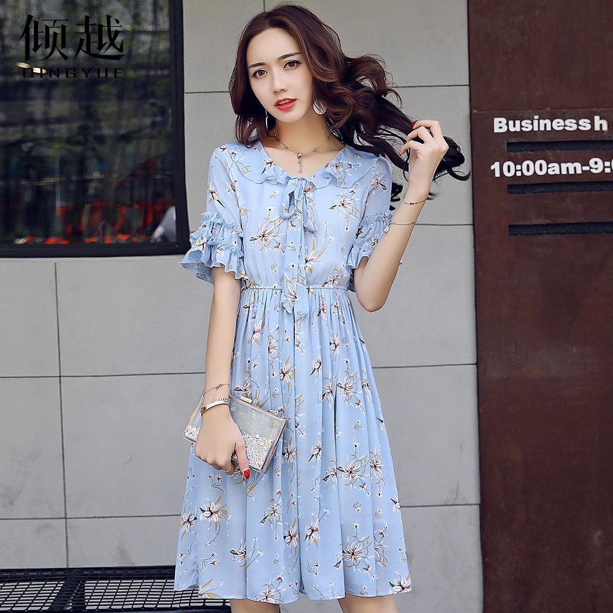 雪紡連衣裙女夏2017夏季新款女裝韓版小清新裙子收腰荷葉袖碎花裙
