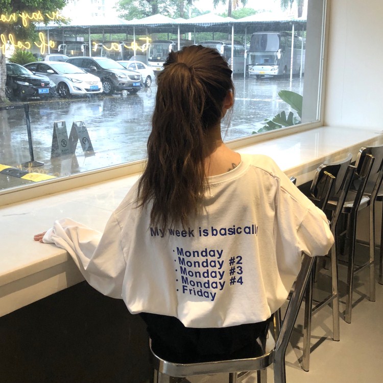 / 秋裝女裝韓版寬松字母印花長袖T恤中長款休閑百搭體恤顯瘦上衣潮
