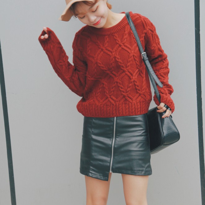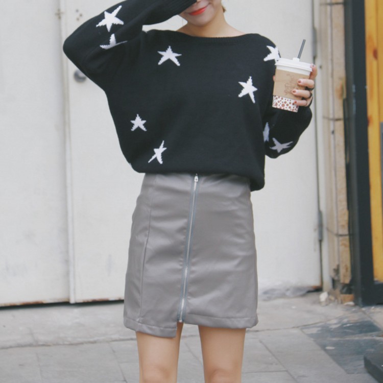 / 冬款韓國復古學院風PU短裙高腰顯瘦a字裙拉鏈不規則半身裙女