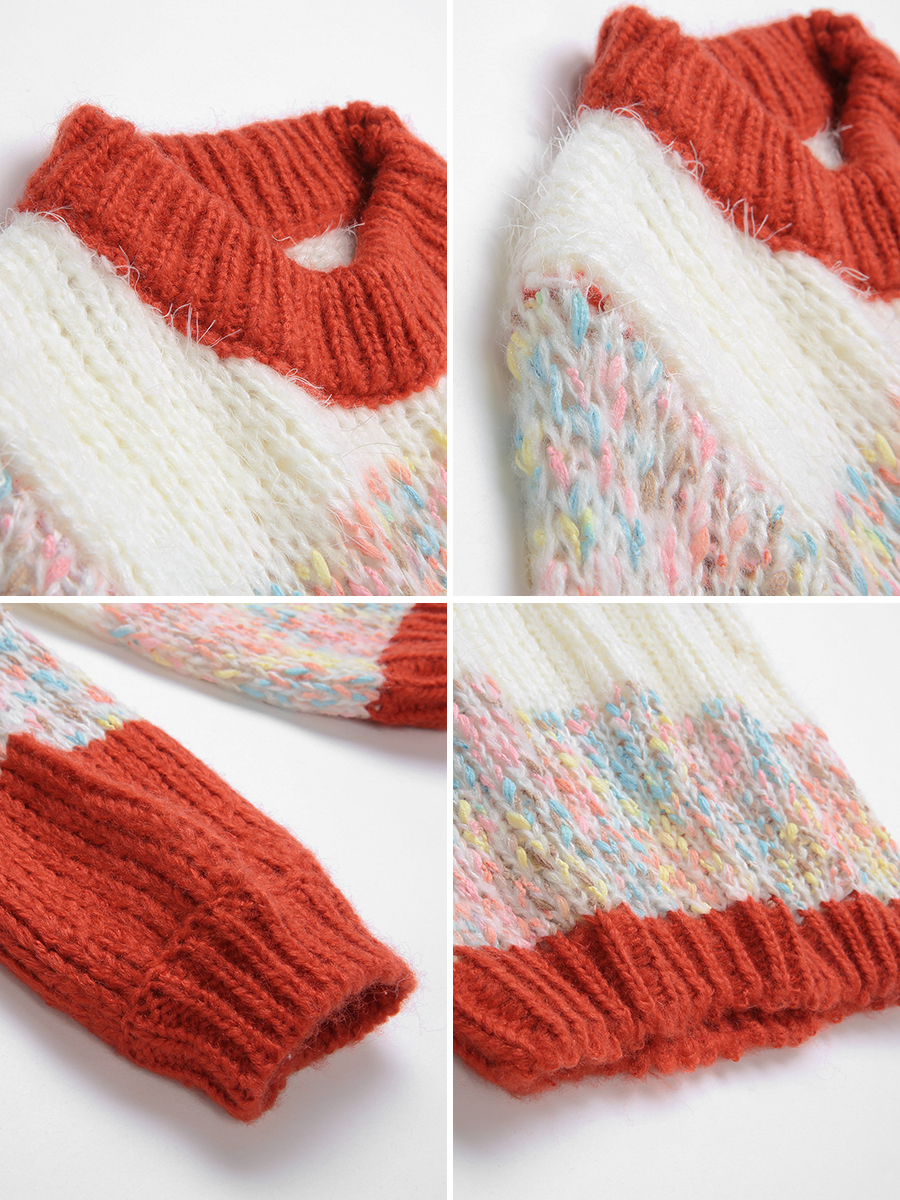 MG小象原宿條紋毛衣女寬松長袖2018秋冬新款圓領套頭學生chic上衣