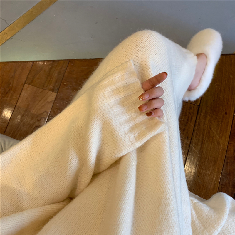 韓版新款秋冬時尚chic開叉長過膝毛衣裙寬松長袖針織加厚連衣裙女