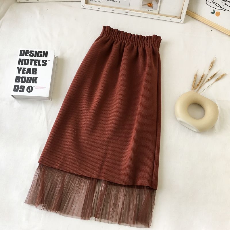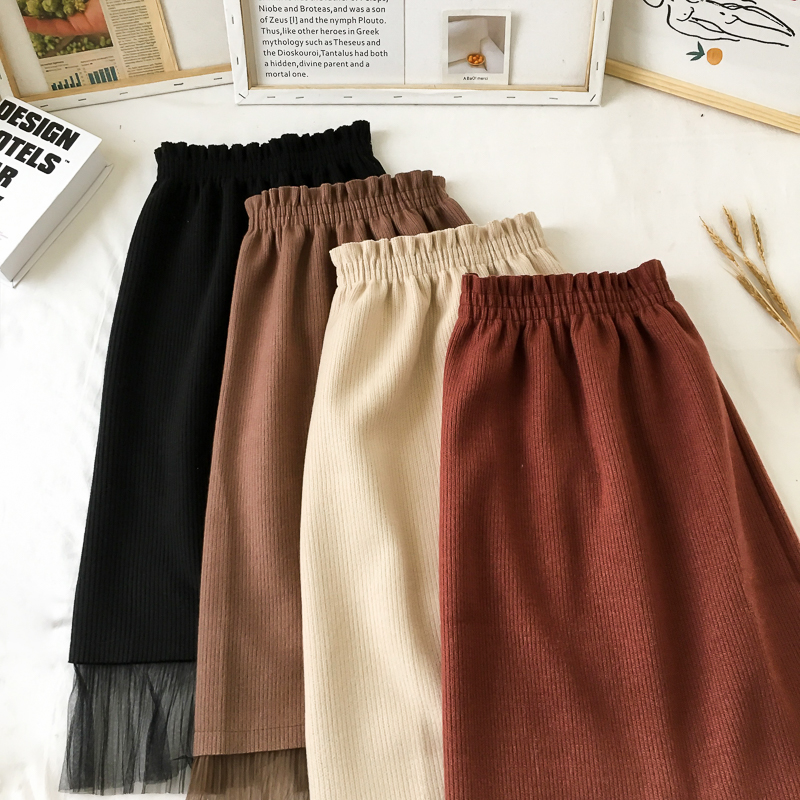 / 裙子女2018秋冬季新款chic基礎色百搭高腰毛呢網紗拼接A字半身裙