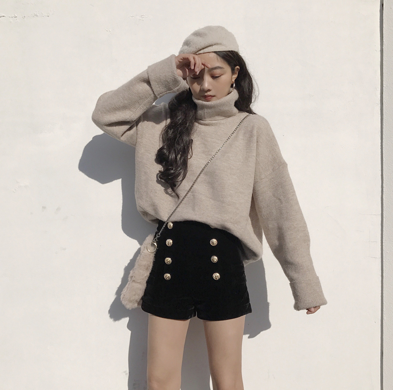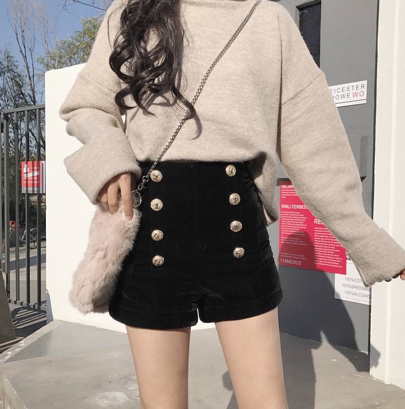 / 褲子女2018新款韓版百搭高腰時尚港風chic氣質秋季雙排扣絲絨短褲