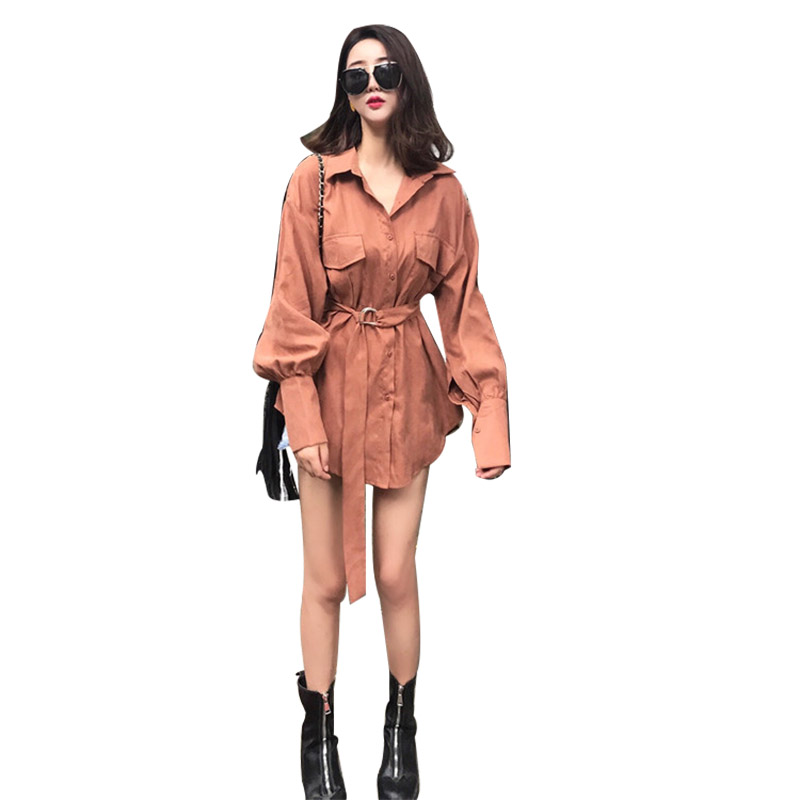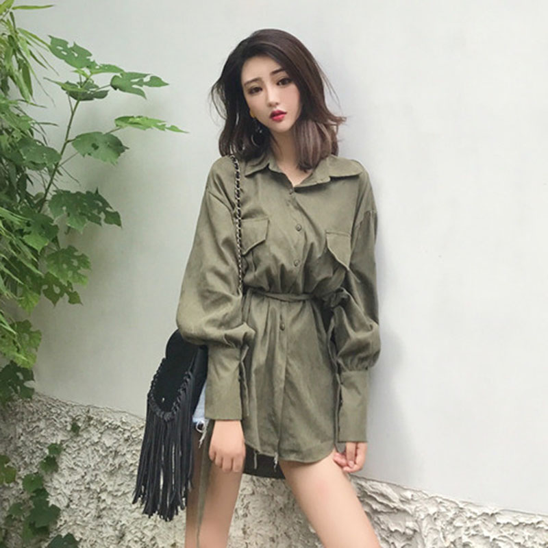 / 復古秋裝女2018新款絲絨面料氣質百搭時髦襯衣顯瘦上衣(配腰帶)