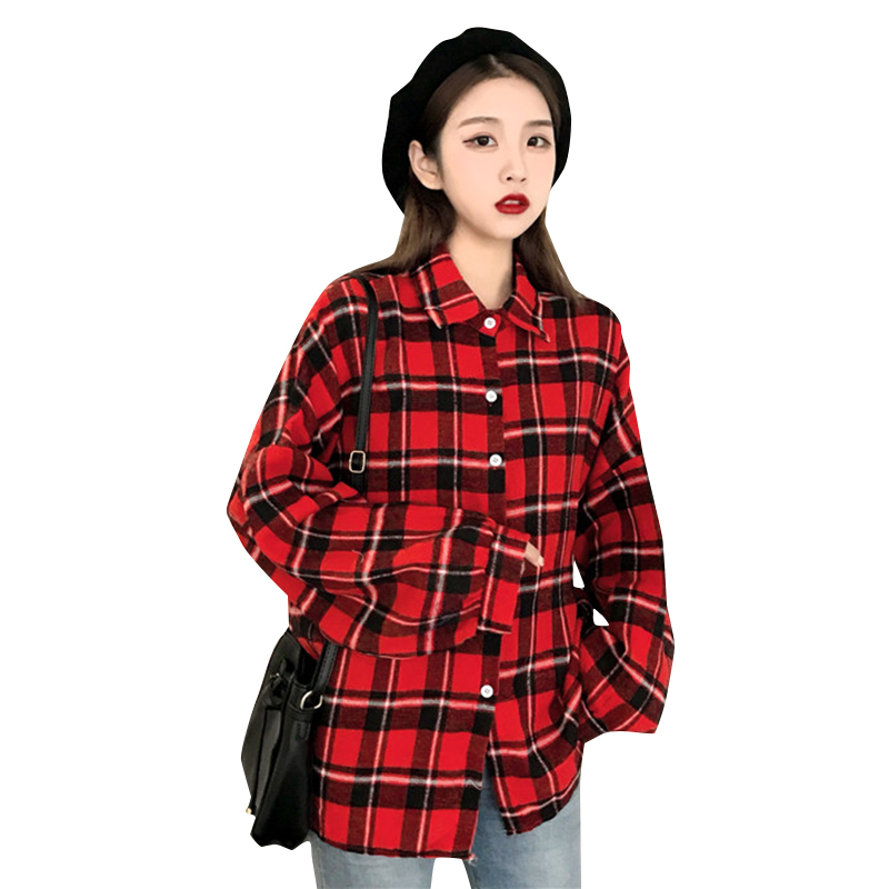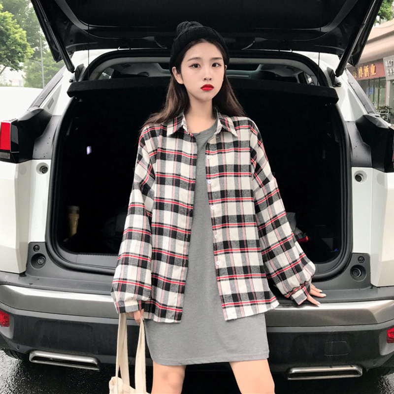 / 襯衣2018新款黃紅色格子襯衫外套女秋原宿polo衫女可愛日系韓上衣