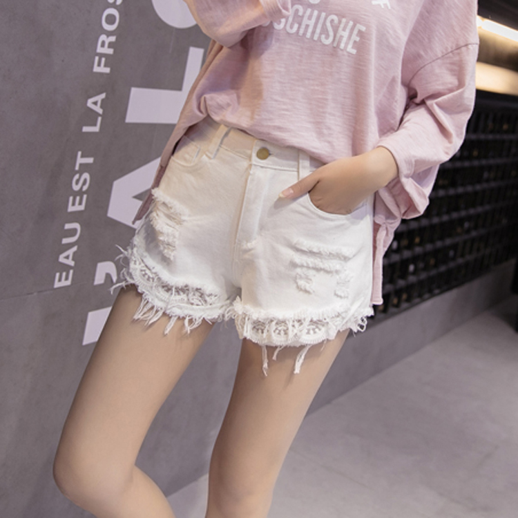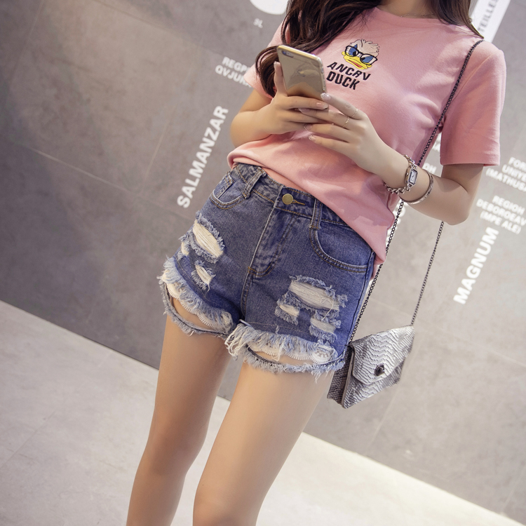 破洞牛仔短褲女韓版高腰夏季磨破學生熱褲大碼流蘇毛邊寬松闊腿褲