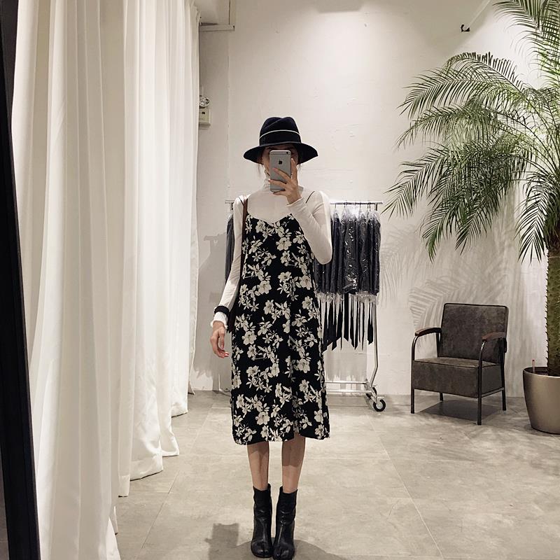 / 春裝新款韓版寬松顯瘦細肩帶花朵雪紡吊帶裙 學生連衣裙長裙女潮