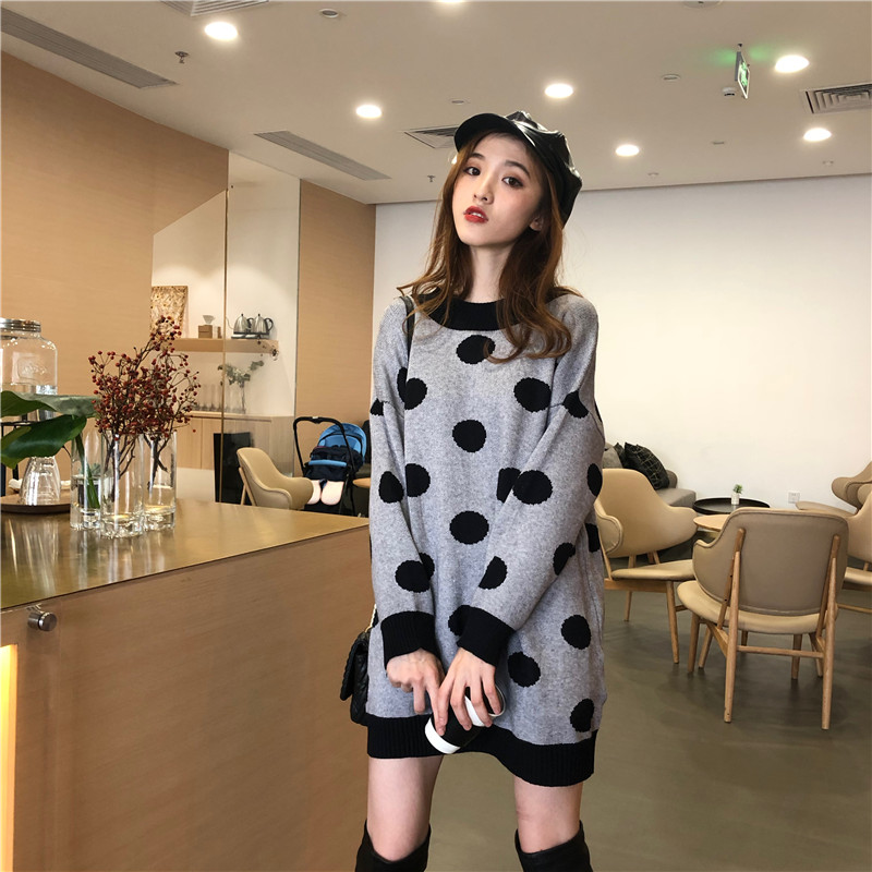 / 慵懶針織連衣裙女2018秋冬新款百搭波點寬松中長款套頭長袖毛衣女