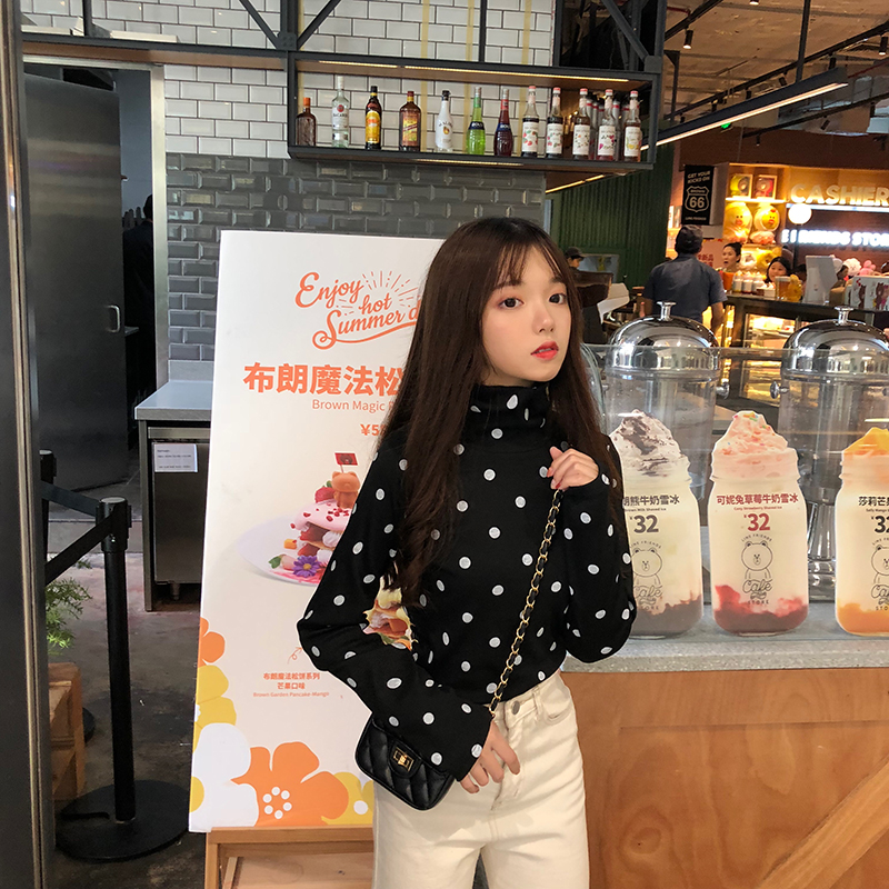 / 秋冬女裝韓版簡約修身顯瘦波點打底衫學生高領長袖T恤秋衣上衣潮