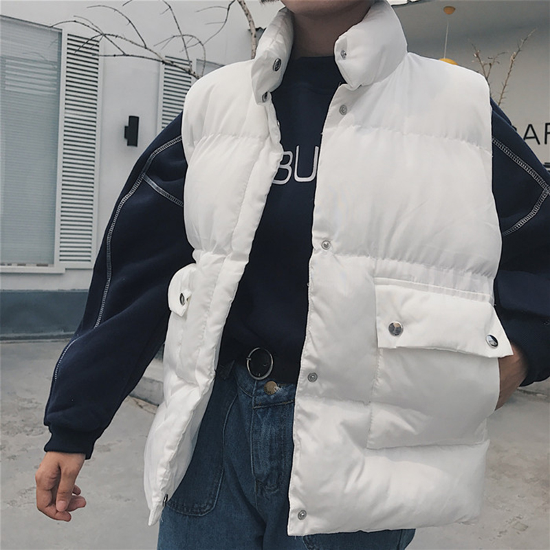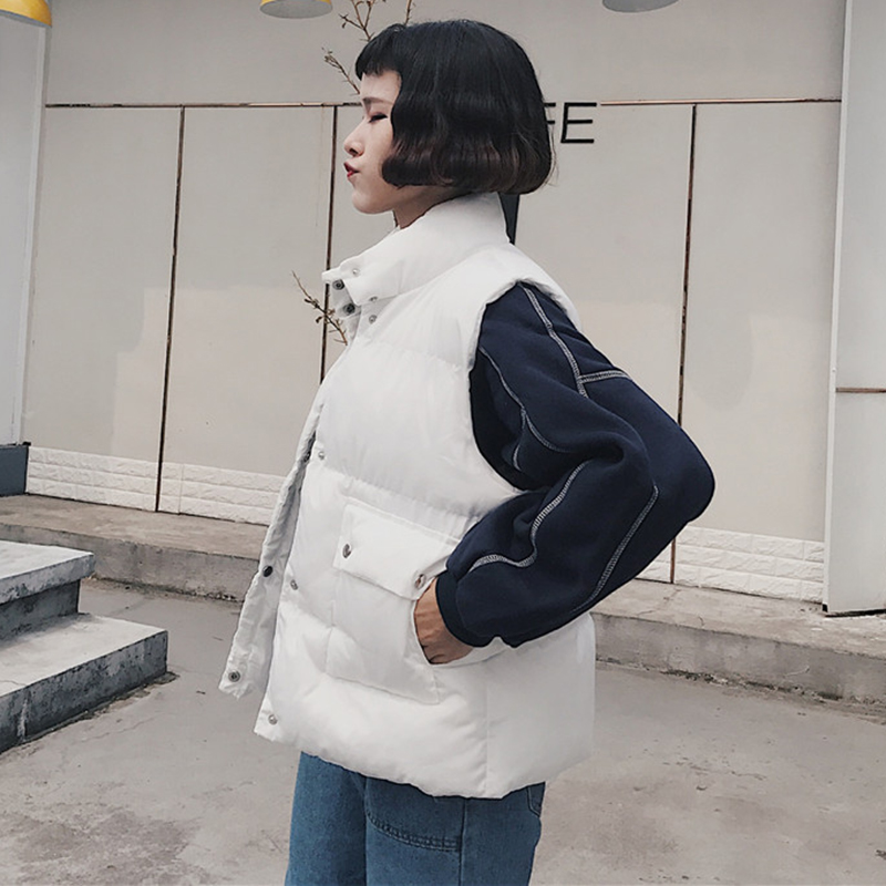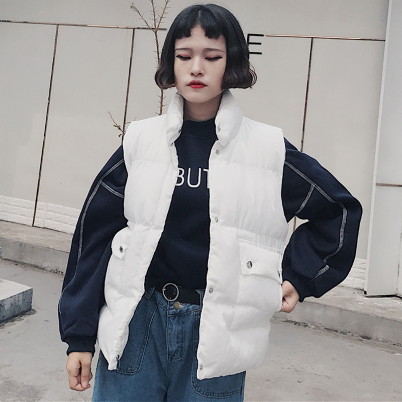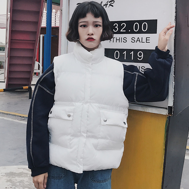 韓版寬松棉衣女2018冬裝新款學生時尚白色面包服休閑無袖馬甲外套