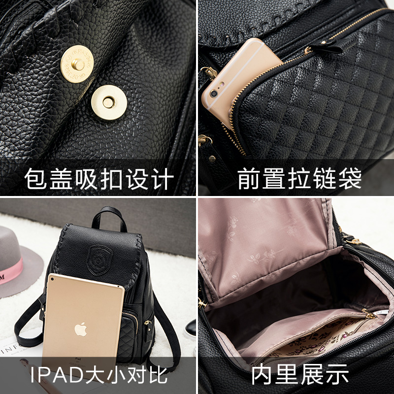 雙肩包女韓版pu時尚百搭學院風印章編織包包新款女士背包女潮