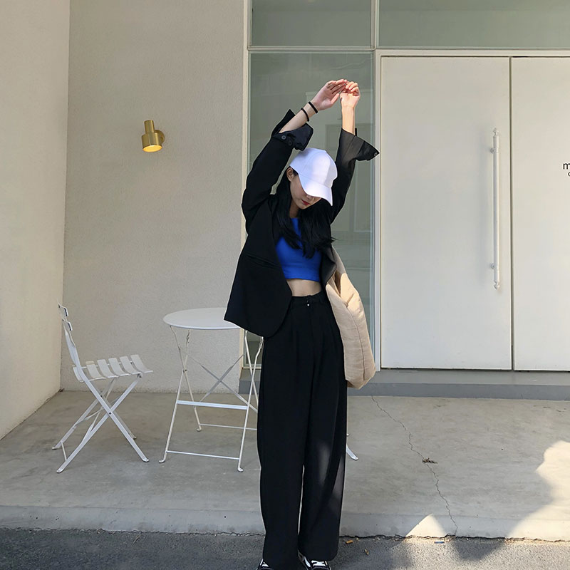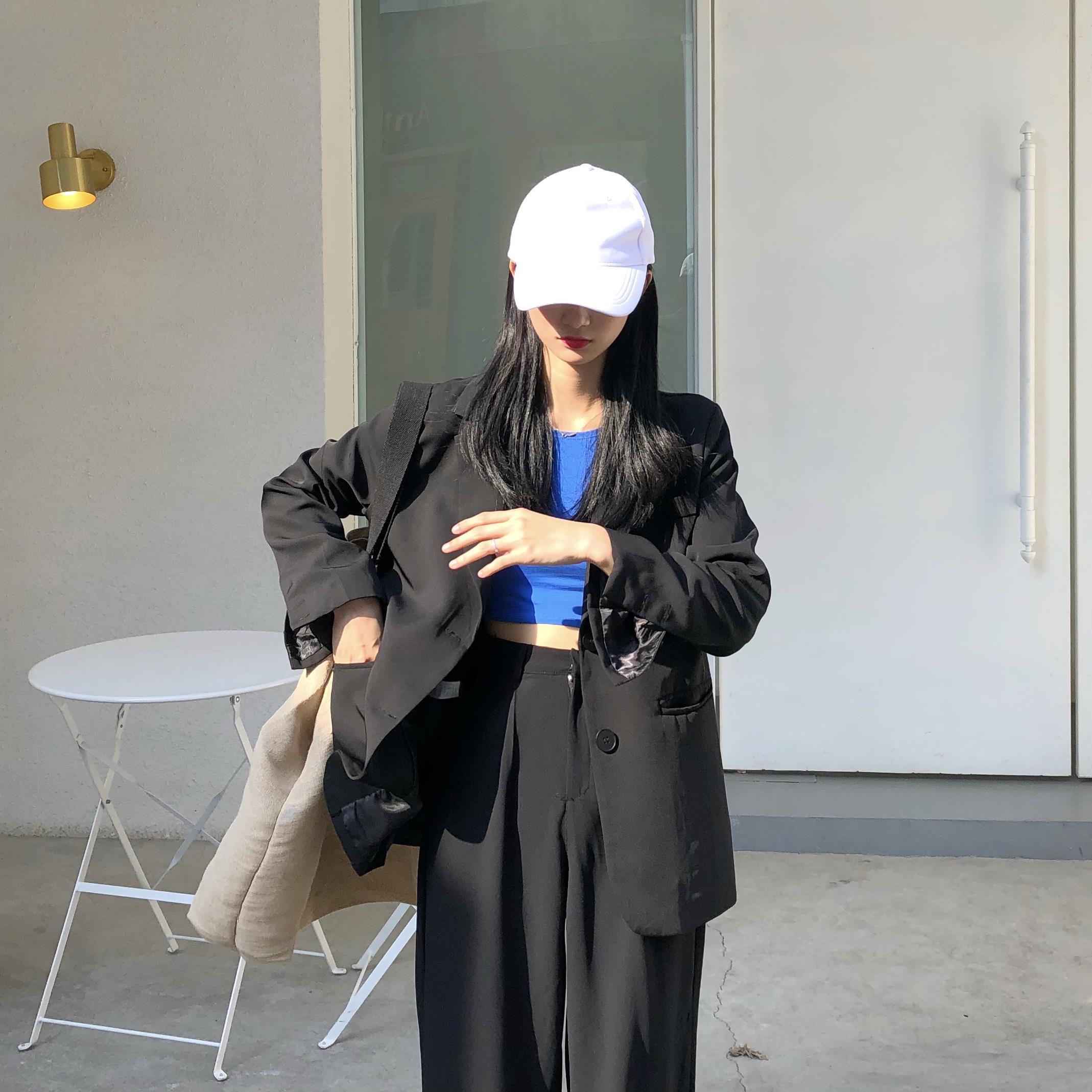 / 韓版時尚簡約女裝寬松顯瘦黑色小西裝+黑色顯高長腿褲百搭直筒褲