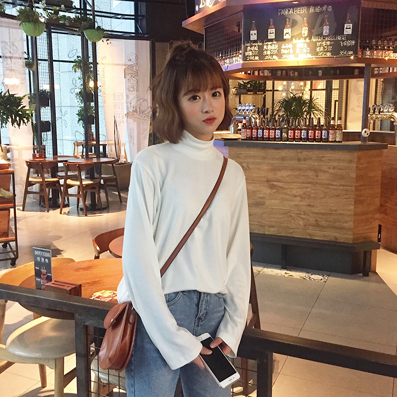 / 秋季女裝韓版針織半高領修身長袖T恤純色顯瘦打底衫體恤上衣學生