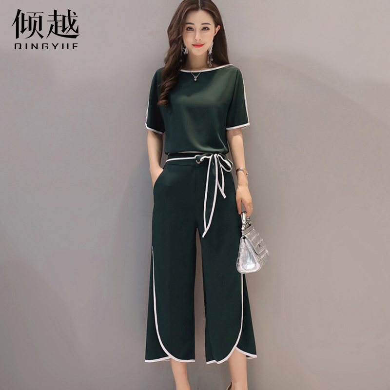 時尚套裝女夏季2017新款洋氣女裝韓版小香風顯瘦氣質闊腿褲兩件套