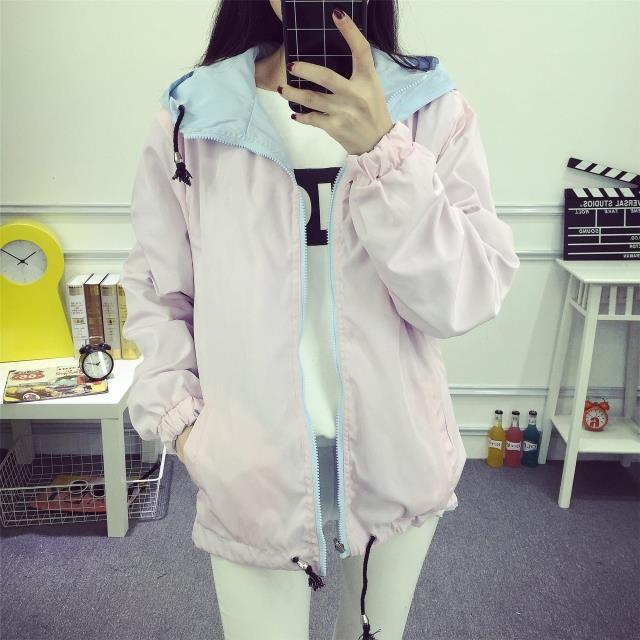 / 春季新款學院風軟妹粉嫩糖果色雙面寬松百搭風衣外套女連帽棒球服