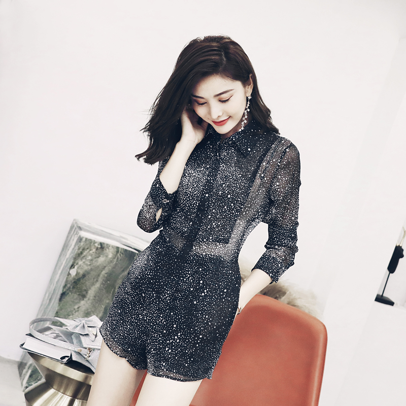S秀淑女氣質2018夏季新款雪紡連體短褲網紗半身裙印花套裝兩件套