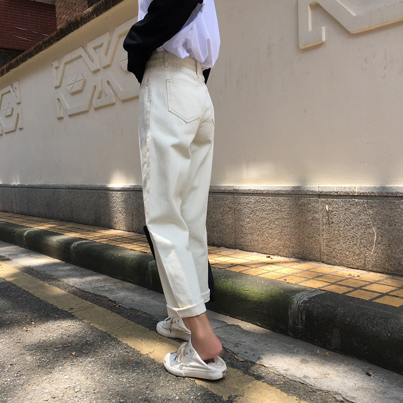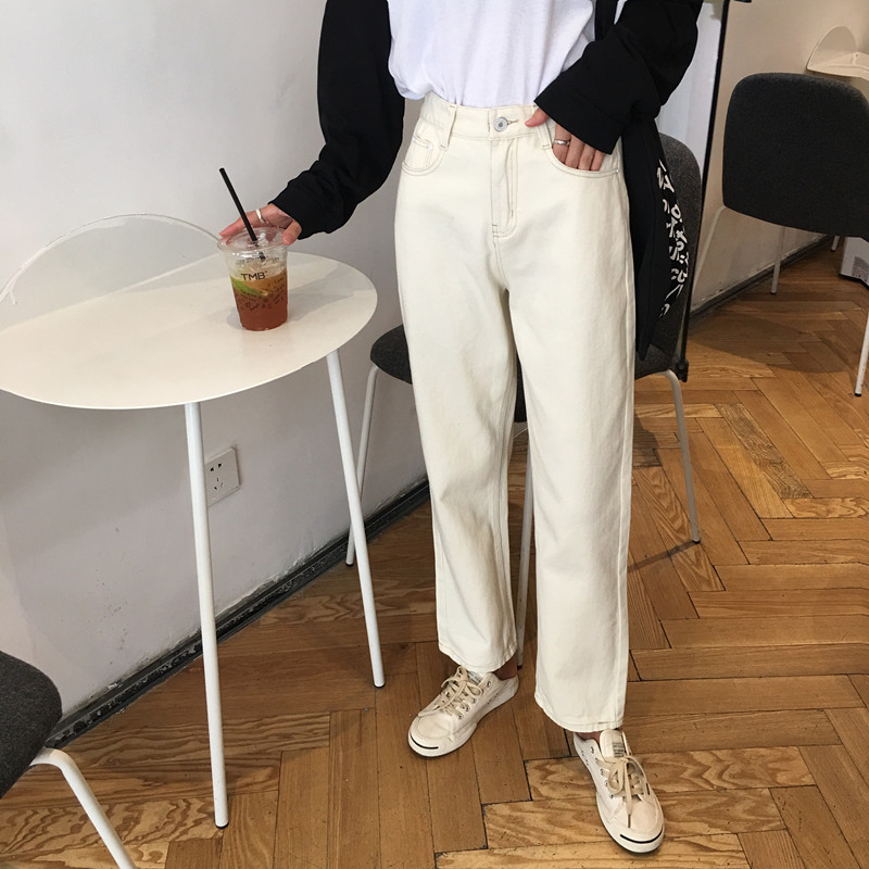 / 秋季韓版寬松百搭純色牛仔褲高腰顯瘦闊腿褲直筒褲長褲學生褲子女