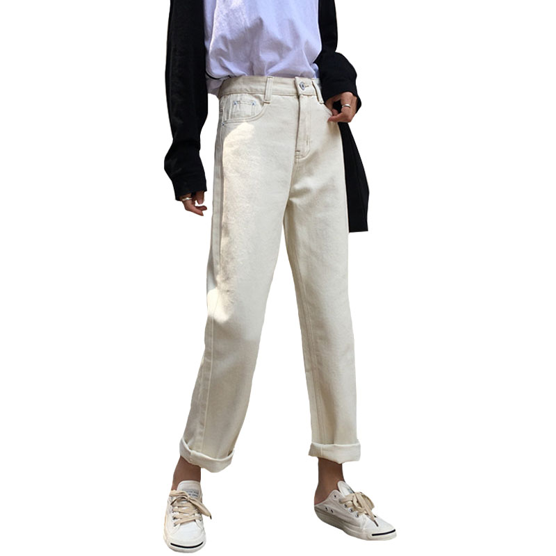 秋季韓版寬松百搭純色牛仔褲高腰顯瘦闊腿褲直筒褲長褲學生褲子女