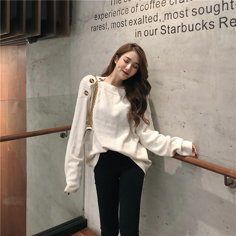 韓版單排扣學院風套頭針織毛衣女秋冬2018新款長袖寬松純色上衣潮