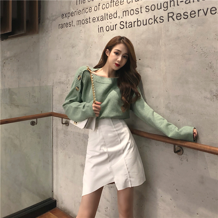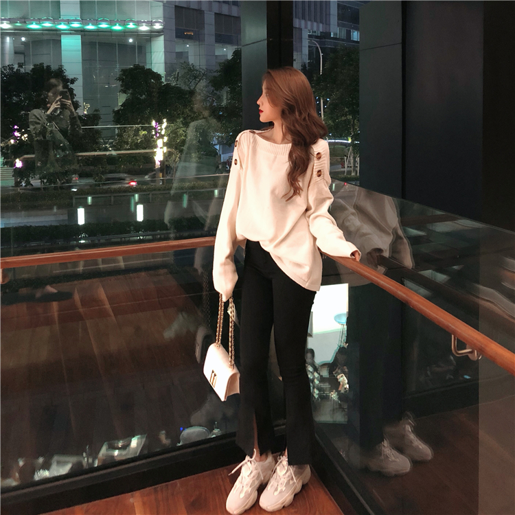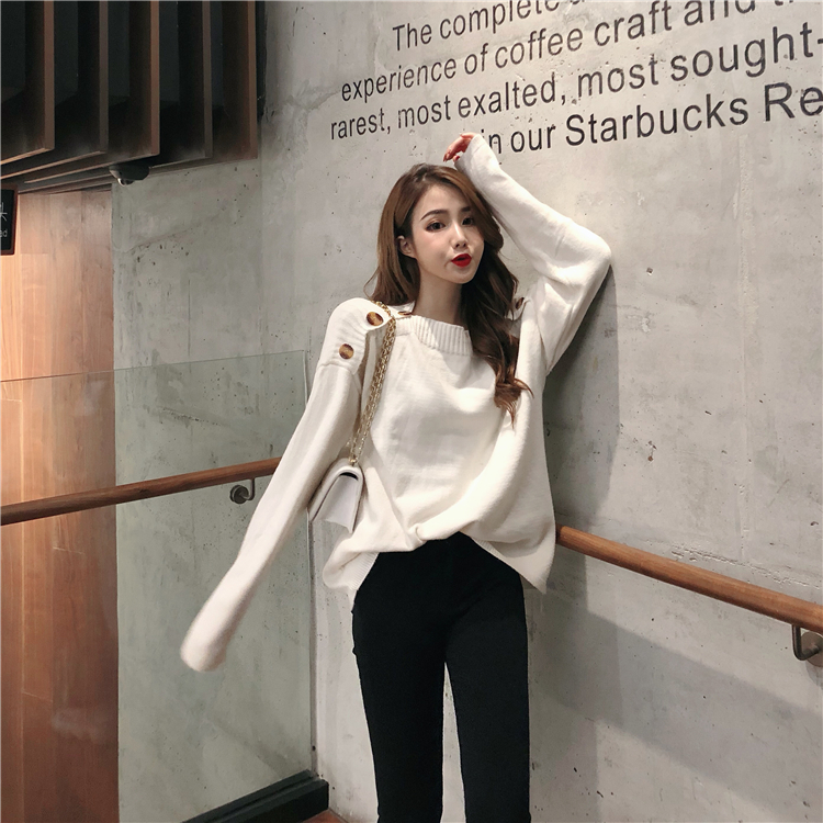 / 韓版單排扣學院風套頭針織毛衣女秋冬2018新款長袖寬松純色上衣潮