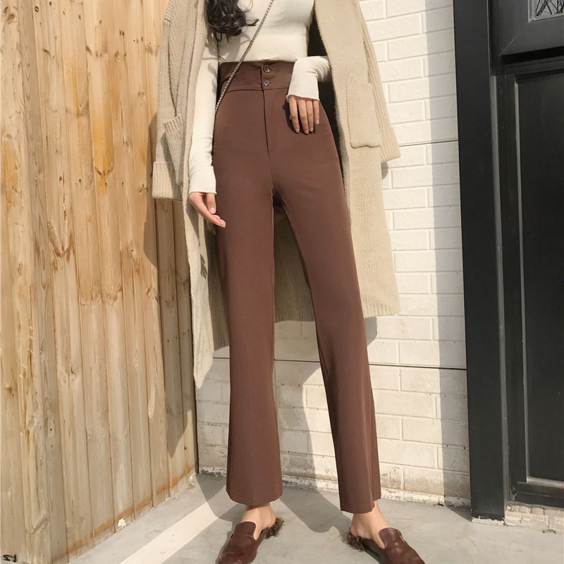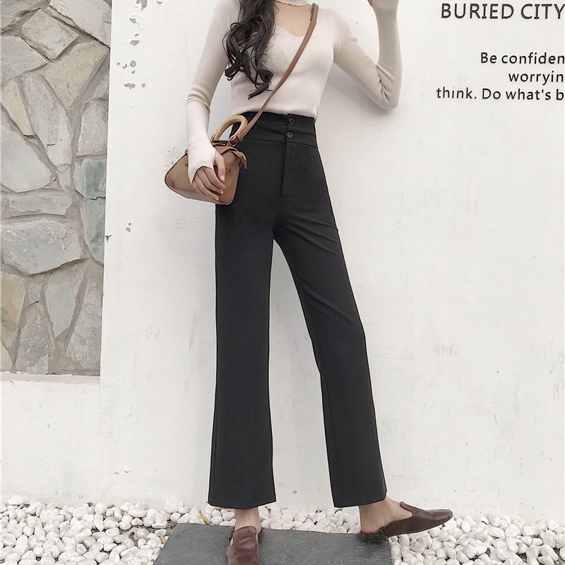 時尚秋裝女2018新款薄款復古高腰百搭微喇休閑西褲修身顯瘦褲子潮