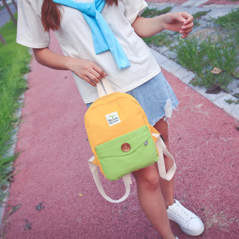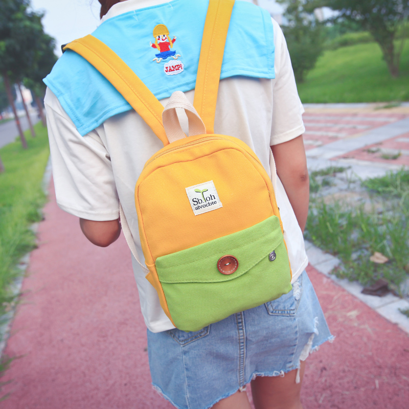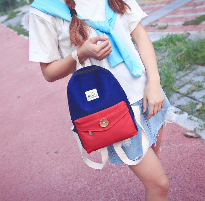 / 原宿風小號雙肩包女韓版街頭迷你帆布背包撞色小包包女學生書包潮