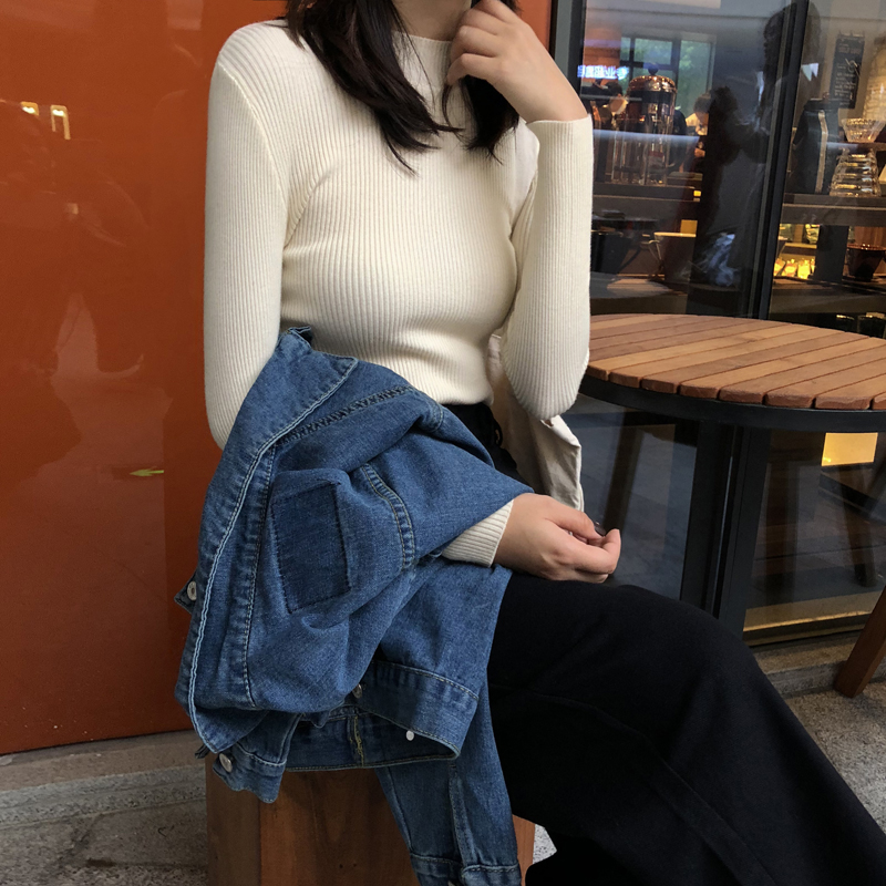 糖果色長袖毛衣外套女秋冬裝2018新款韓版彈力修身顯瘦打底針織衫