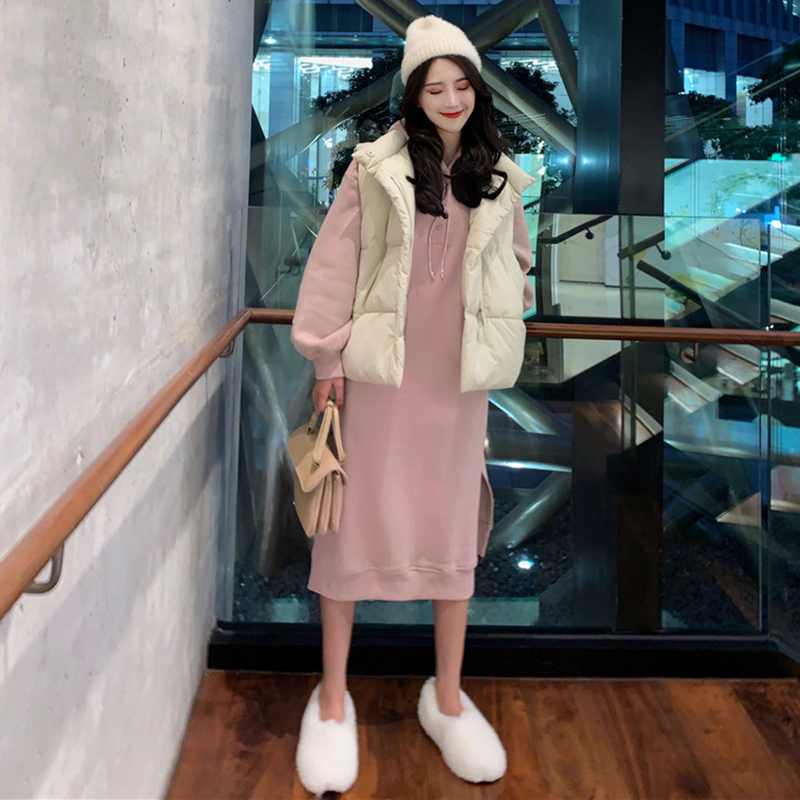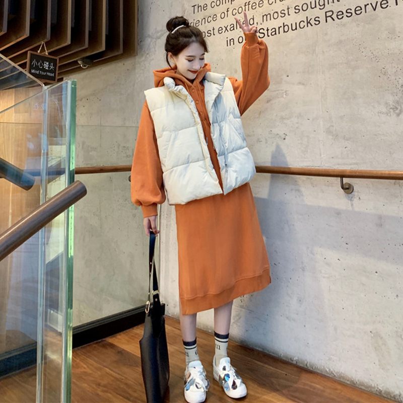 洋氣套裝女2018新款加絨連帽套頭衛衣裙學生棉衣網紅馬甲外套秋冬
