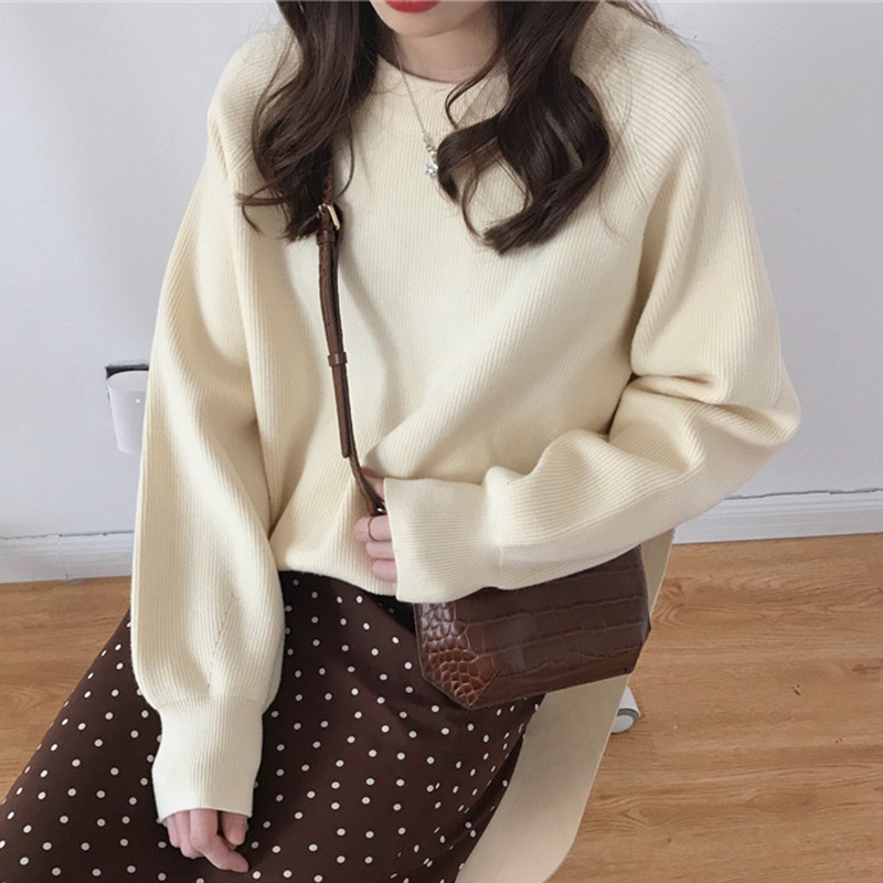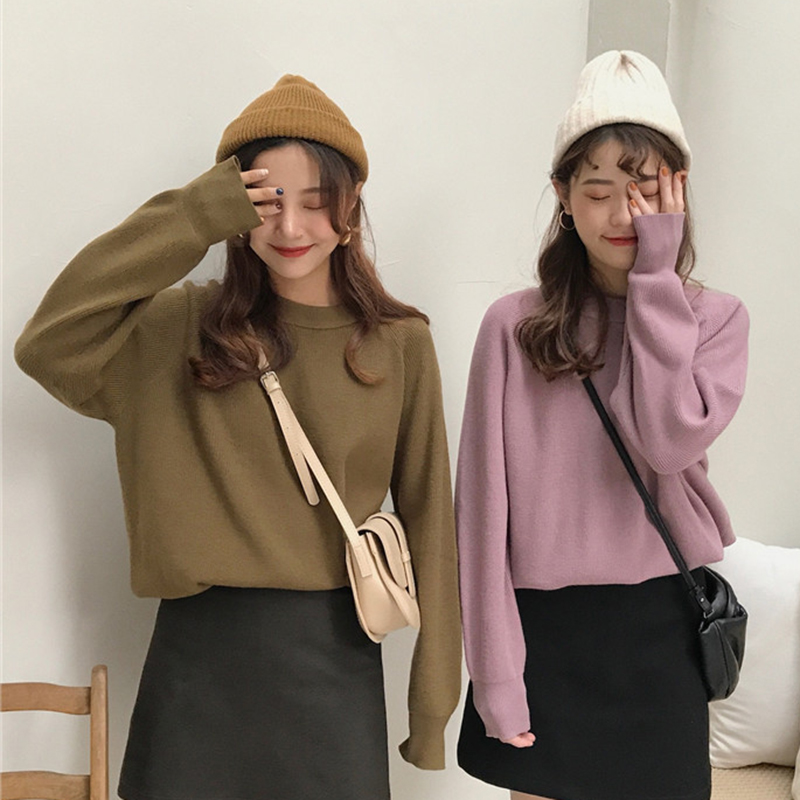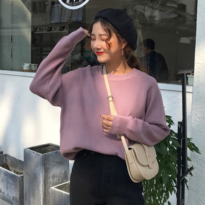 休閑簡約針織衫秋裝女2018新款韓版學生寬松圓領毛衣慵懶長袖上衣