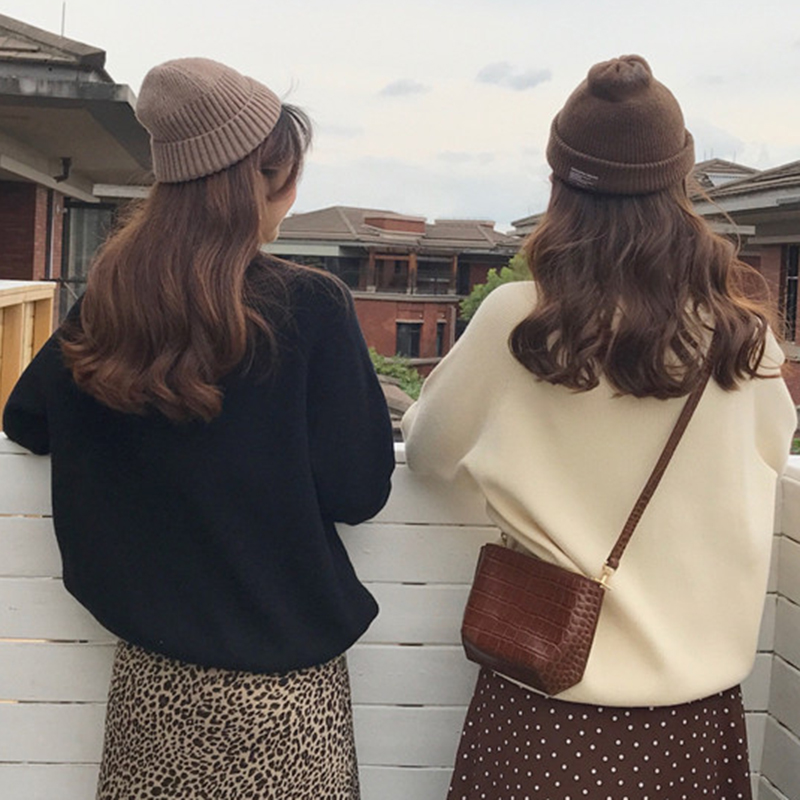 / 休閑簡約針織衫秋裝女2018新款韓版學生寬松圓領毛衣慵懶長袖上衣