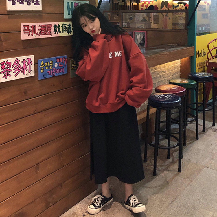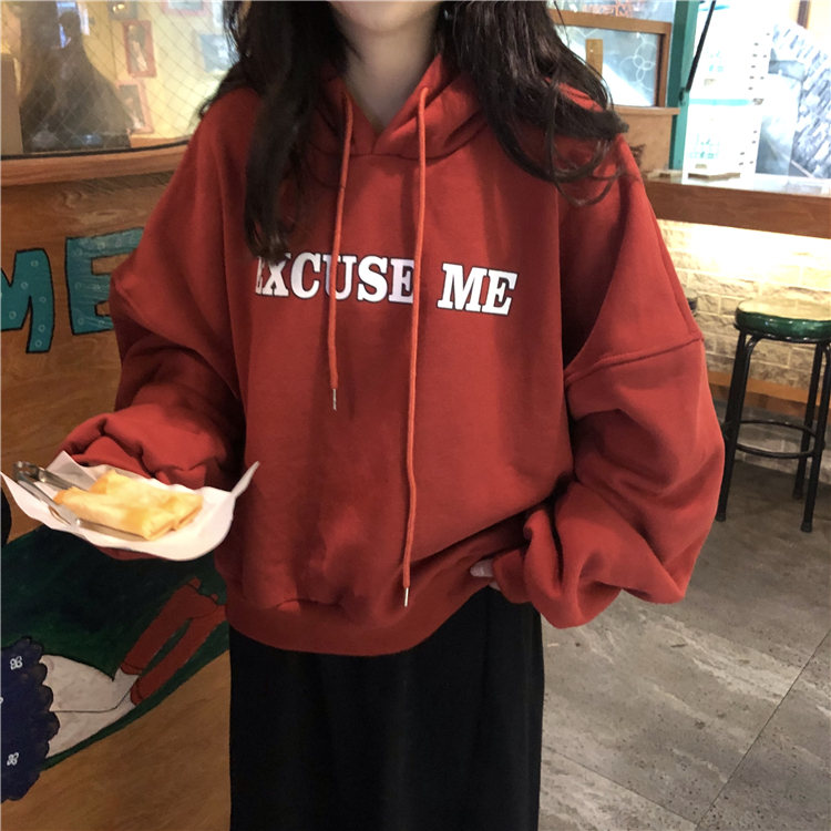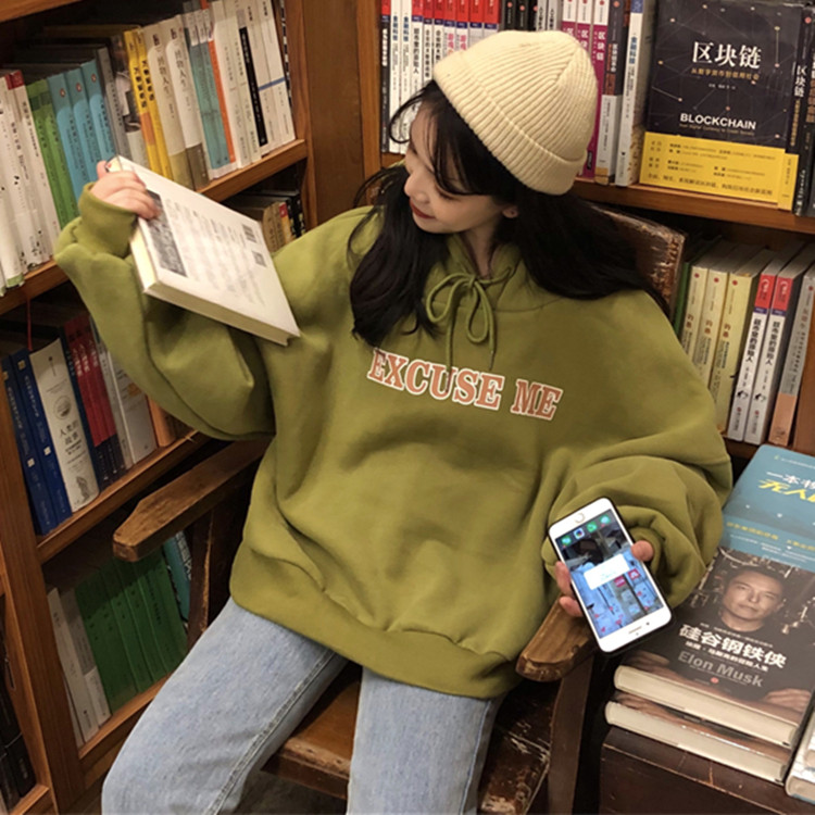 / 秋冬女裝韓版寬松慵懶風連帽字母加絨加厚套頭超火衛衣上衣外套潮