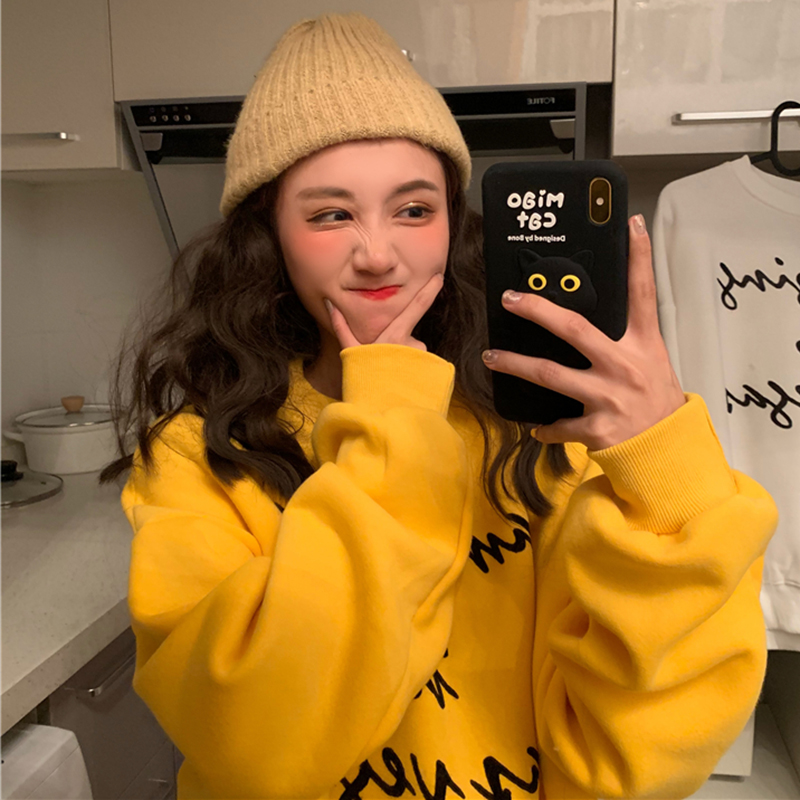 學院風簡約字母印花加絨衛衣女冬裝2018新款韓版百搭寬松長袖外套