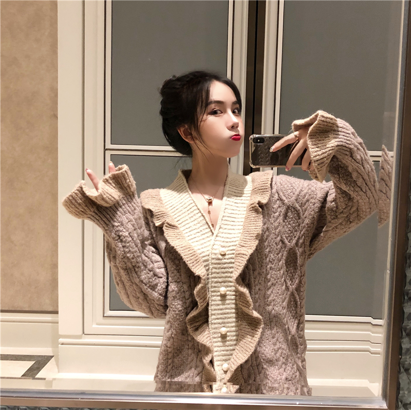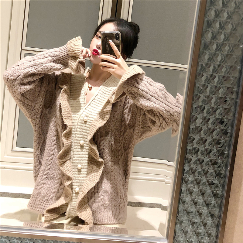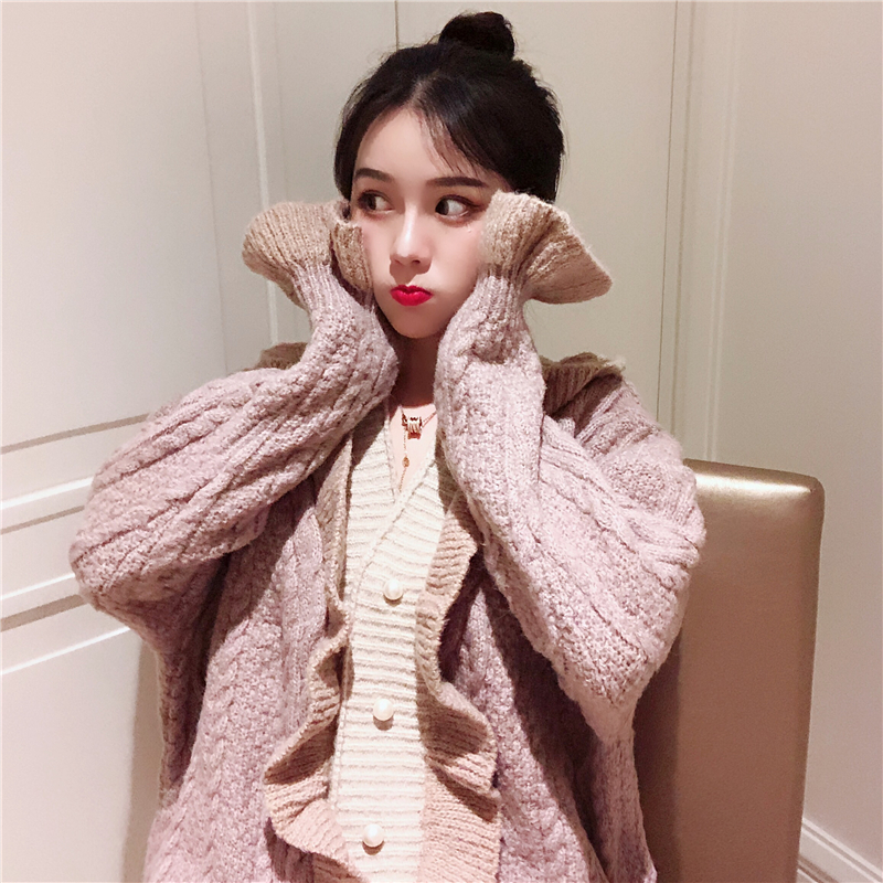 韓版慵懶網紅毛衣女2018新款針織開衫寬松學生V領加厚針織衫外套