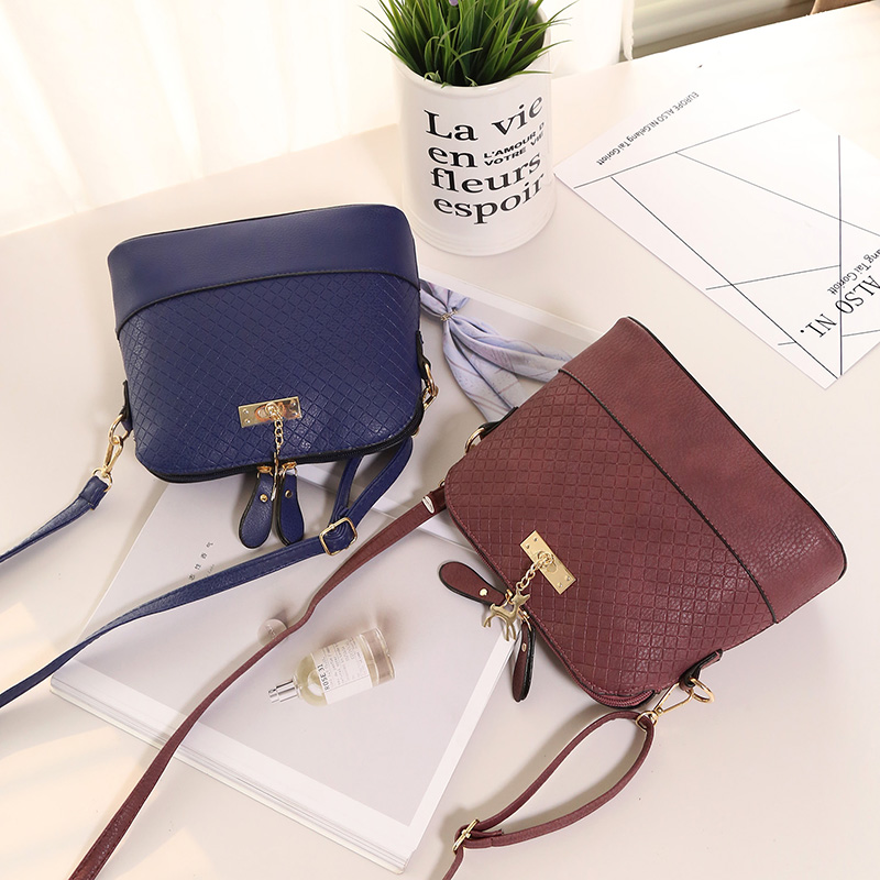 2017春季新款韓版時尚壓痕小鹿單肩貝殼包潮流百搭格子紋斜挎女包