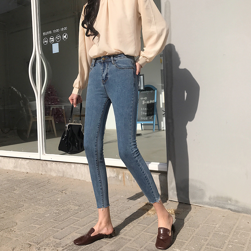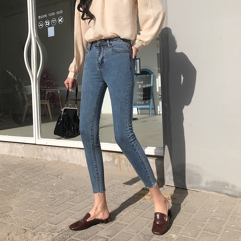 褲子女秋2018新款網紅緊身高腰牛仔褲女韓版顯瘦修身小腳褲鉛筆褲