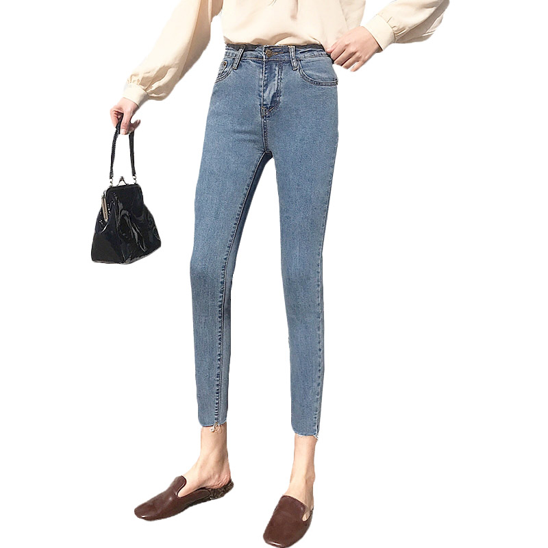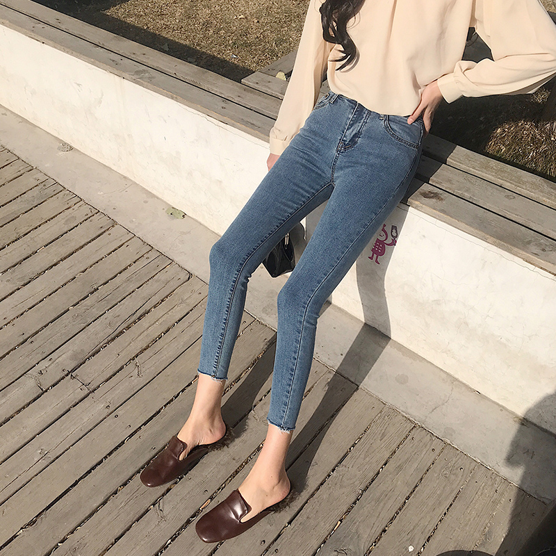 時尚復古彈力高腰修身九分水洗牛仔褲女春秋2018新款韓版顯瘦褲子