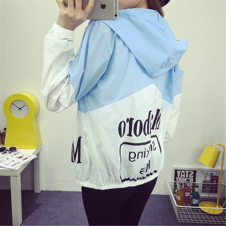 2017春秋薄款少女開衫夏天連帽防曬衣大碼簡約風衣學生短款外套女
