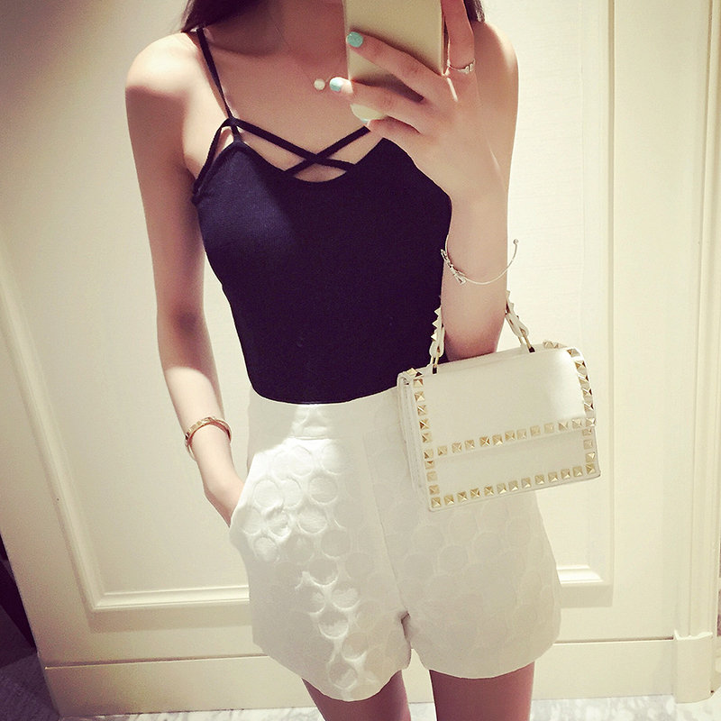 / 春夏新時尚個性百搭可愛修身后背交叉短款針織小性感背心吊帶