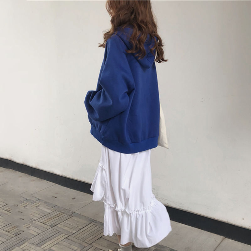 / 學生休閑兩件套秋裝女2018新款寬松加絨連帽衛衣高腰半身蛋糕裙子
