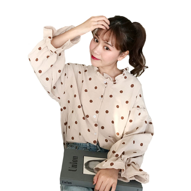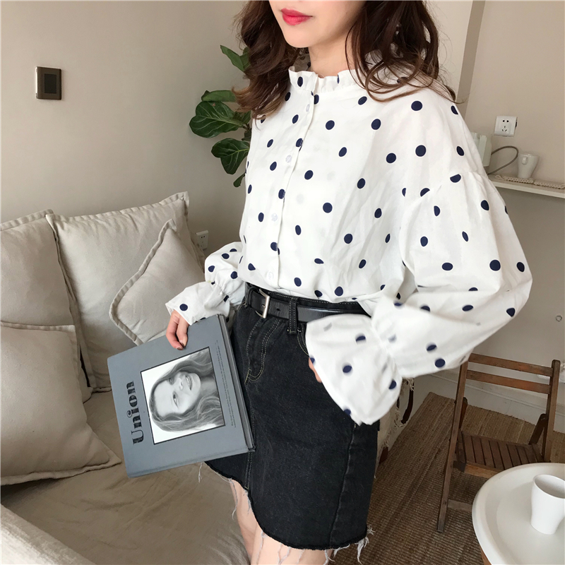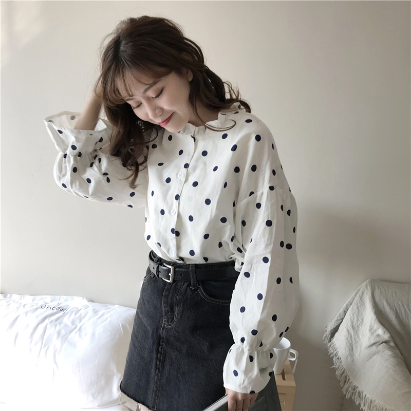 秋裝女裝2018新款韓版寬松波點燈籠袖長袖襯衫打底衫學生休閑襯衣