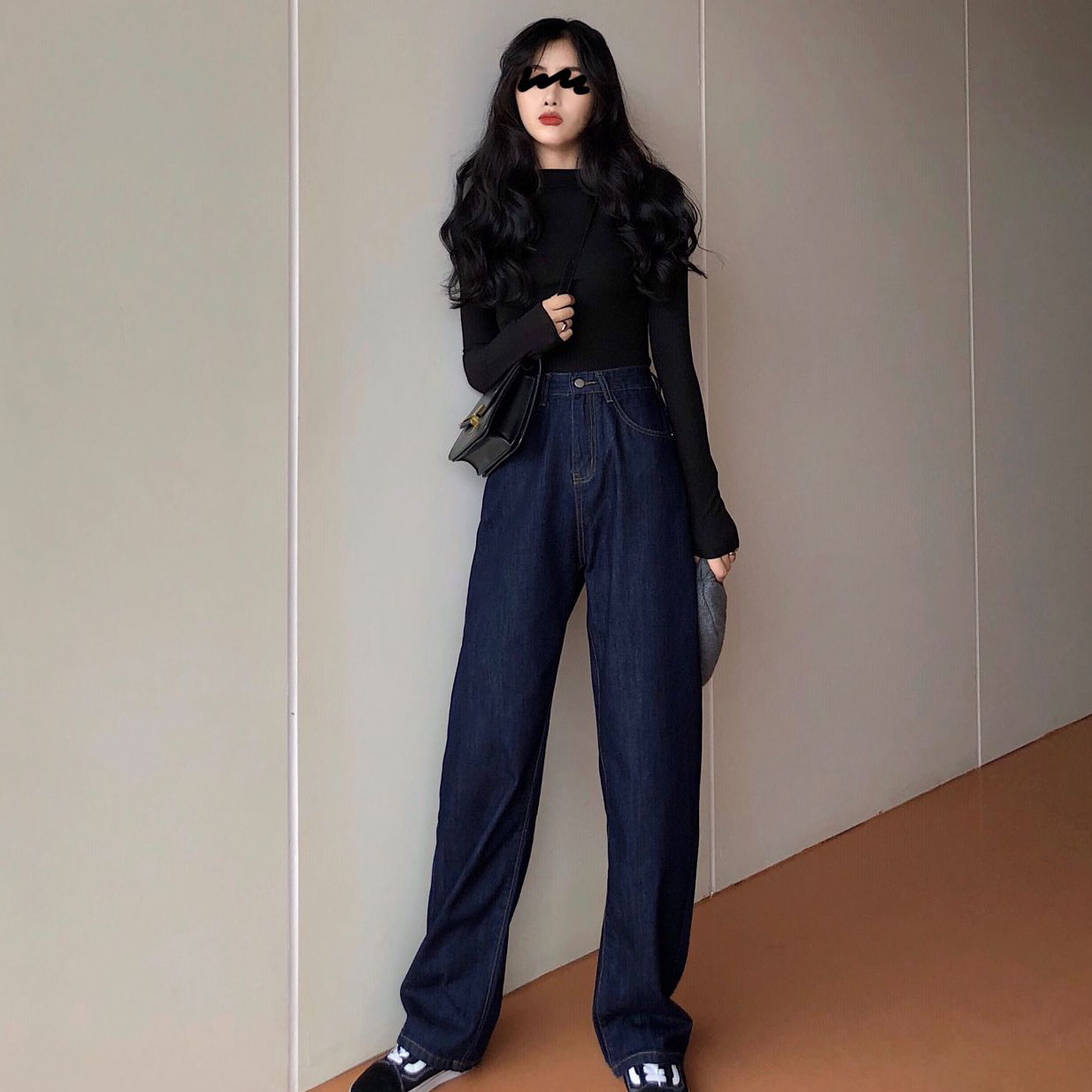 顏色也很好看復古的藏藍色 搭配各種簡單上衣都有一絲復古范