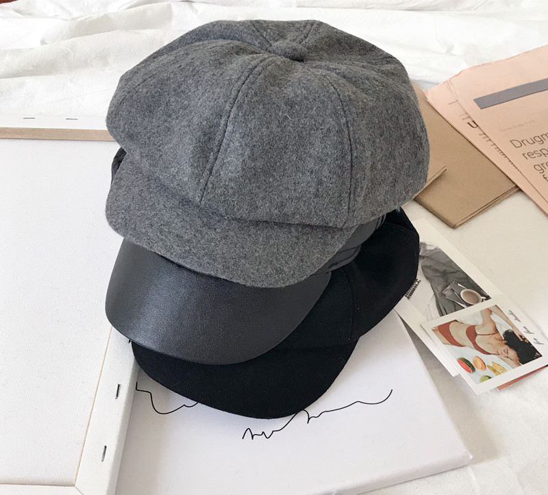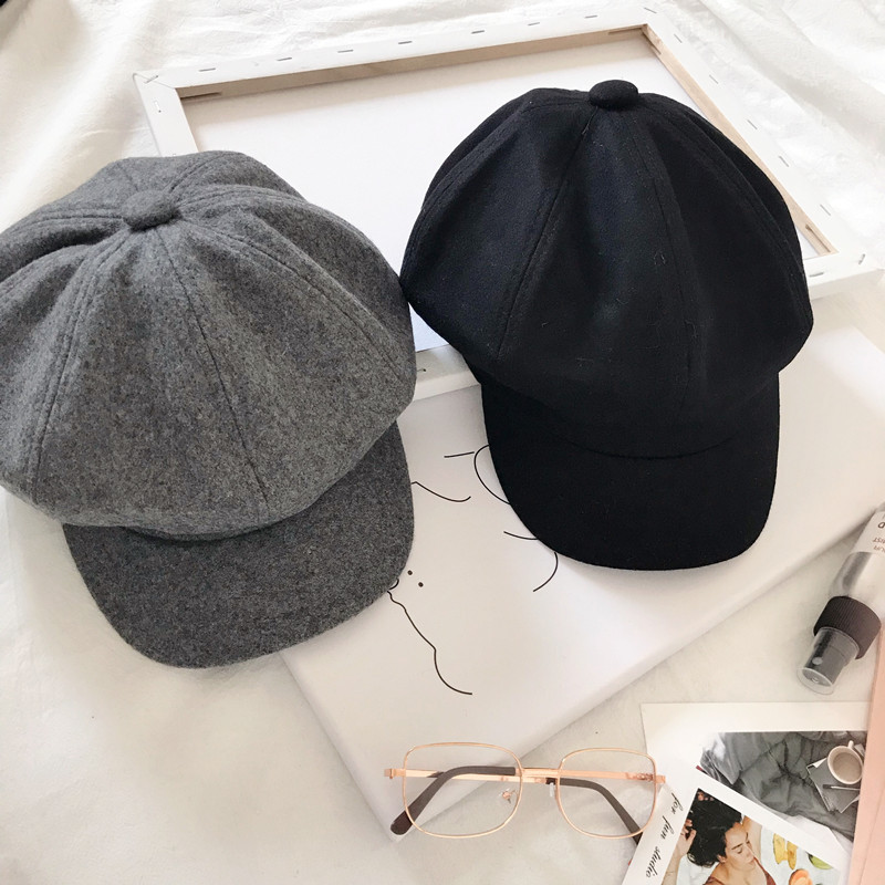韓國時尚毛呢純色復古鴨舌八角帽子男女秋冬新款文藝百搭畫家帽潮