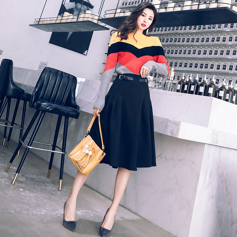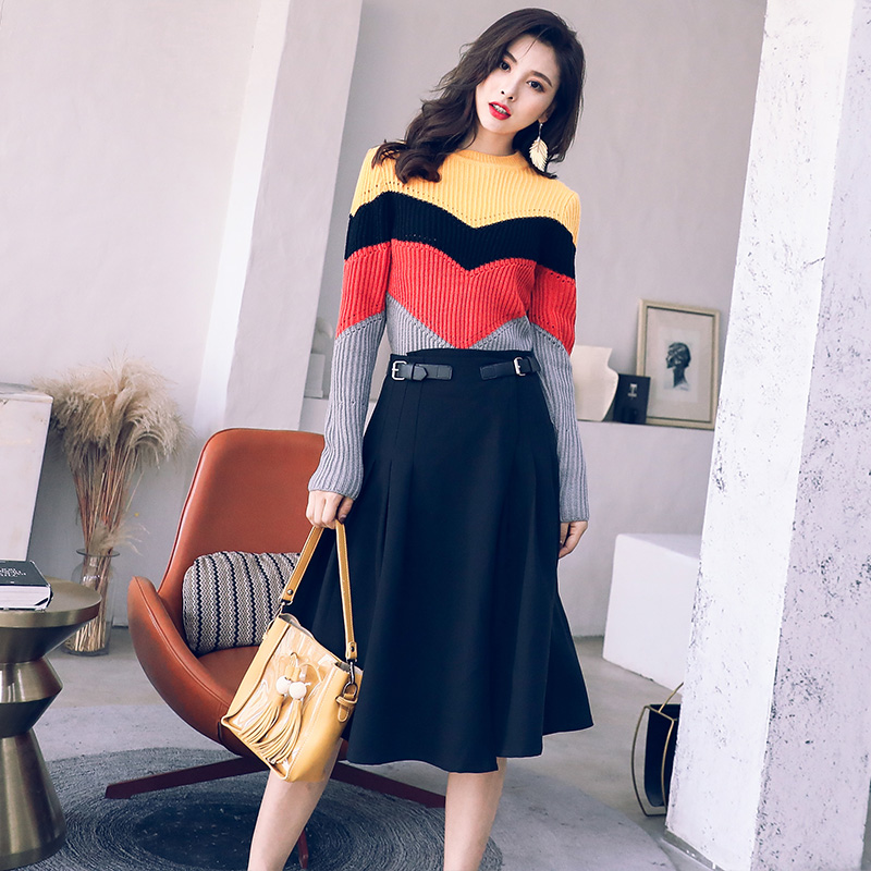 / 名媛氣質秋冬季兩件套2018新款針織拼接上衣顯瘦半身裙時尚套裝裙